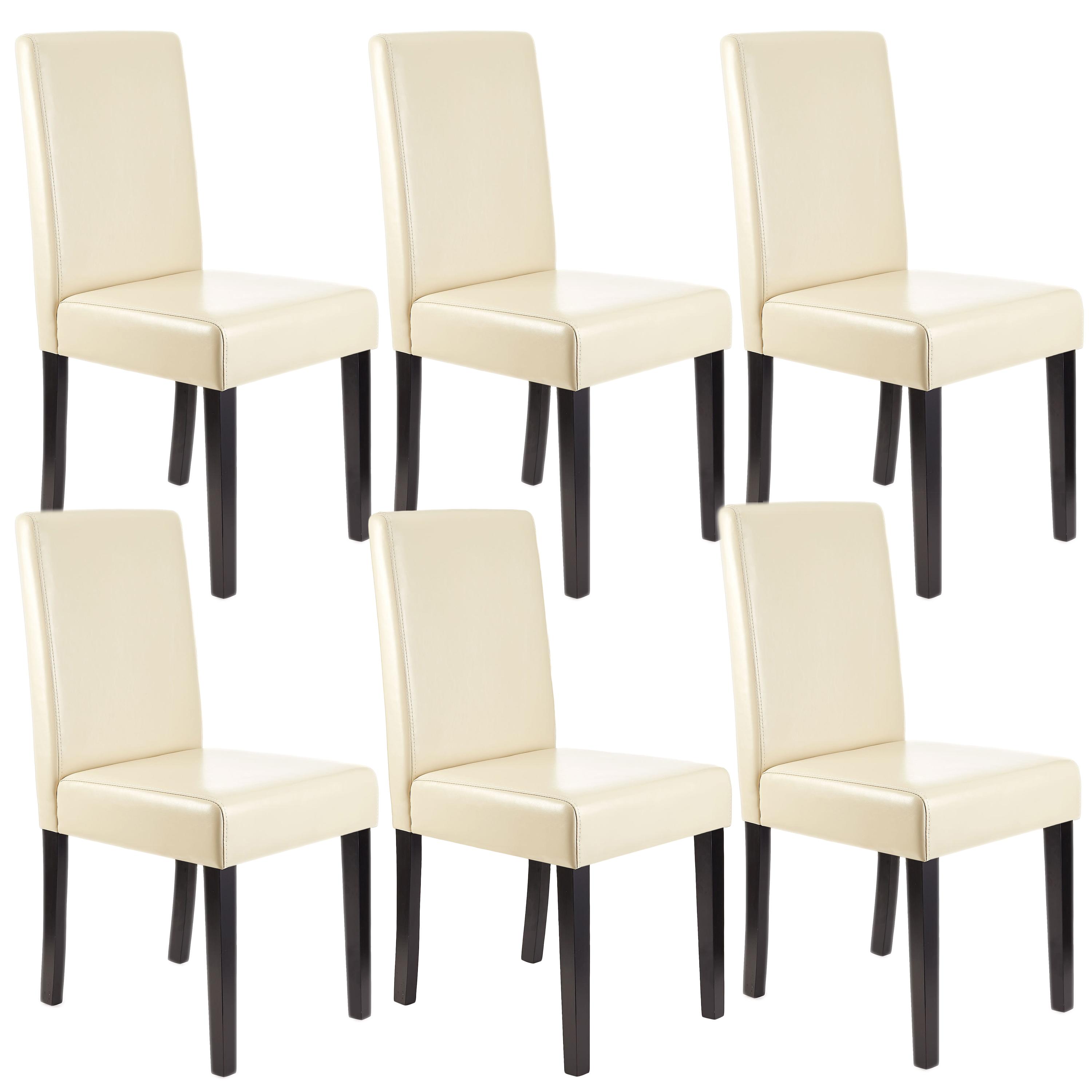 DEMO# Lote 6 Sillas de Comedor LITAU PIEL NATURAL, Crema y patas oscuras