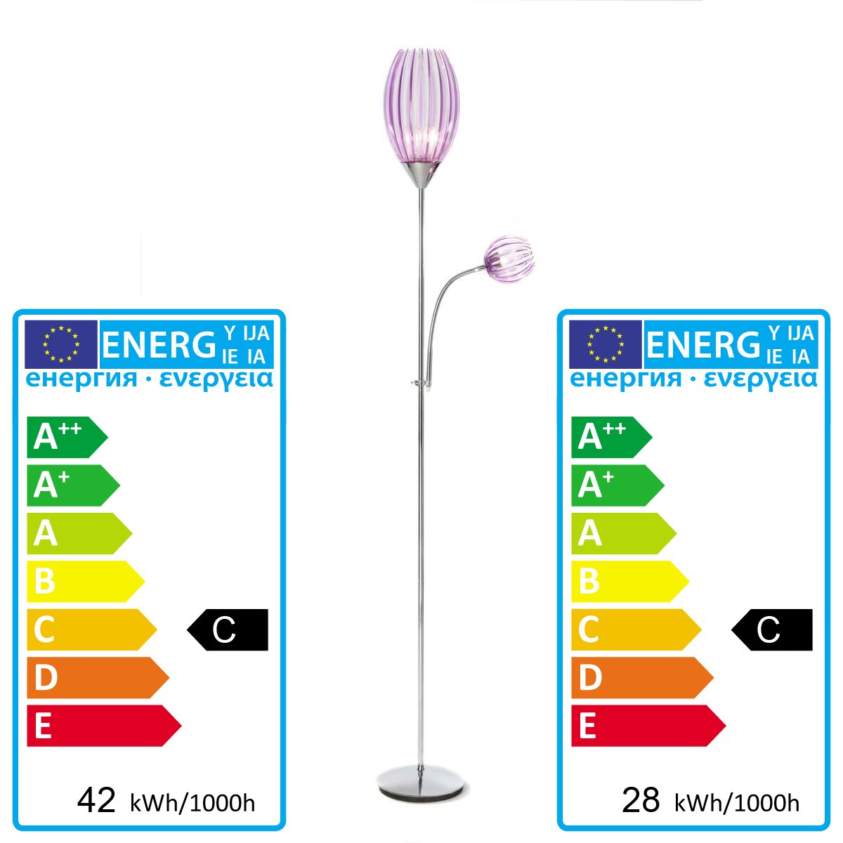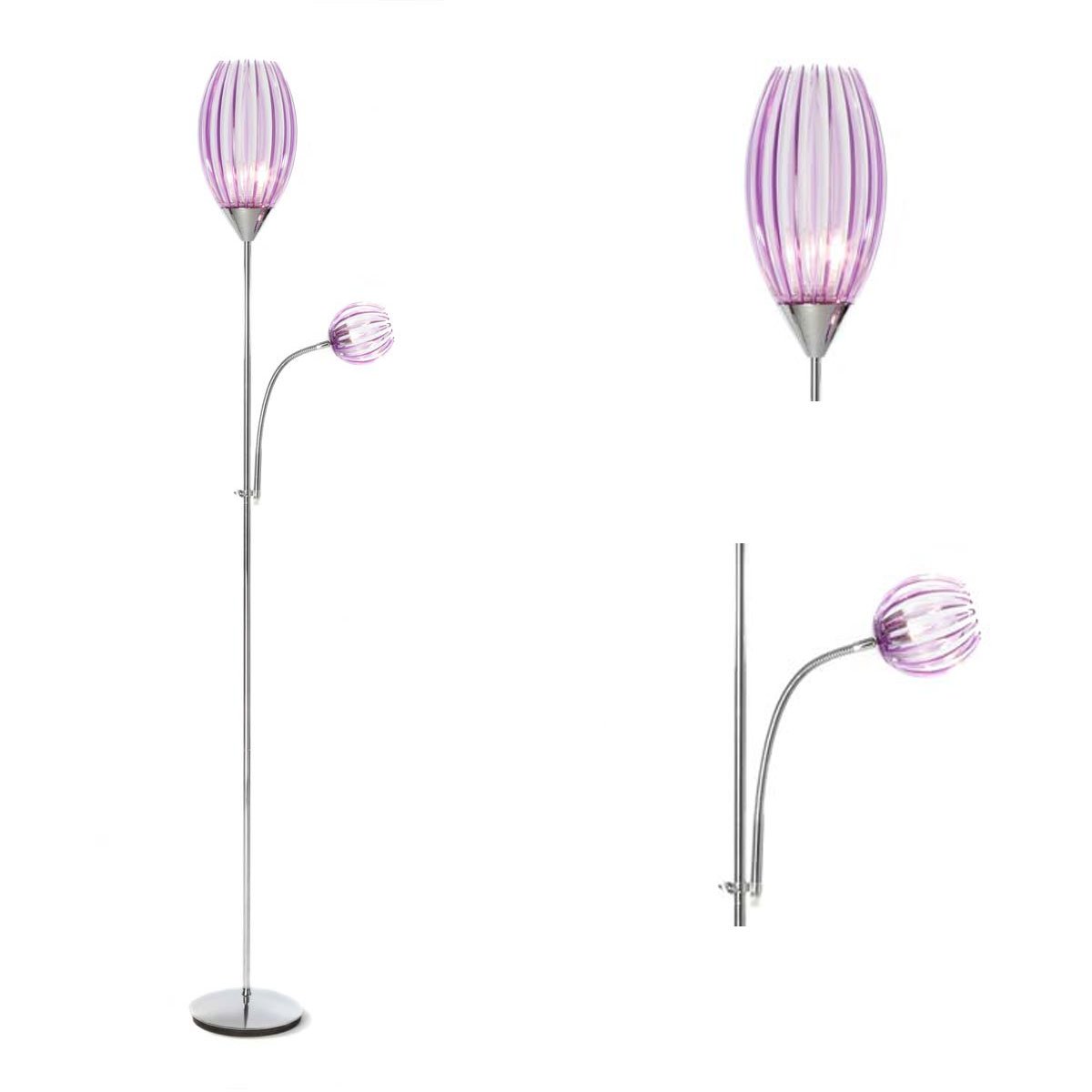Espectacular Lámpara de Pié cromada, con bolas en acrílico, color morado