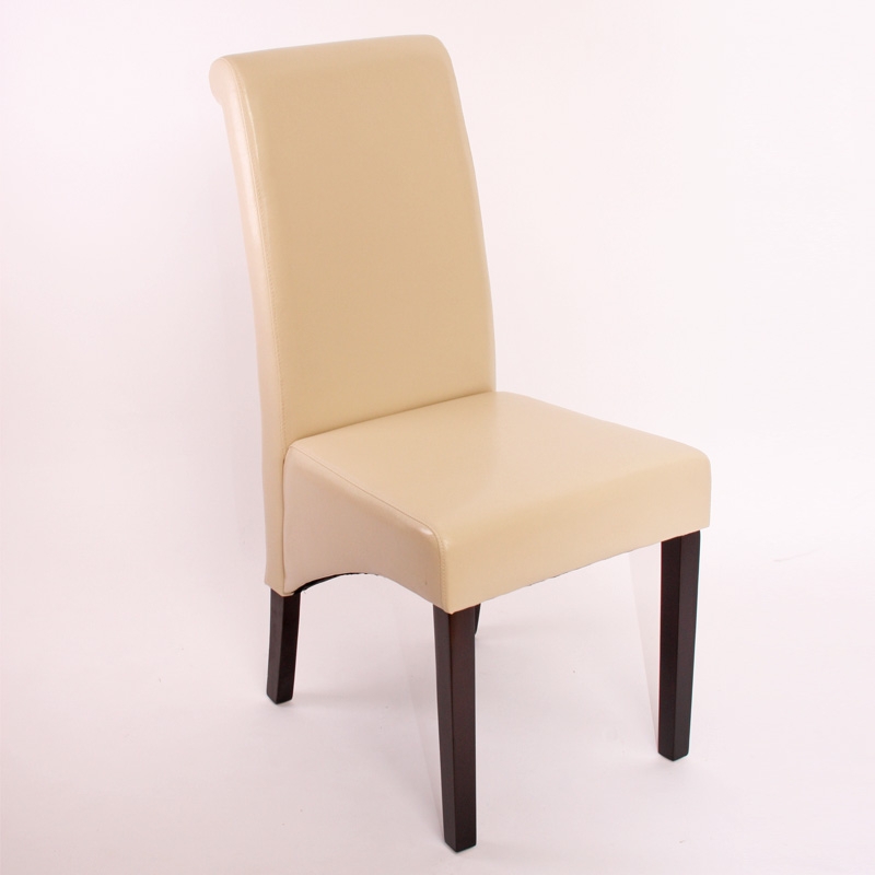 Lote 6 Sillas de Comedor TURIN, Gran estilo y calidad, tapizadas en Piel Real crema y patas madera oscuras
