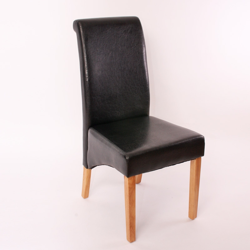 Lote 2 Sillas de Comedor TURIN, Gran estilo y calidad, tapizadas en Piel negra y patas madera claras