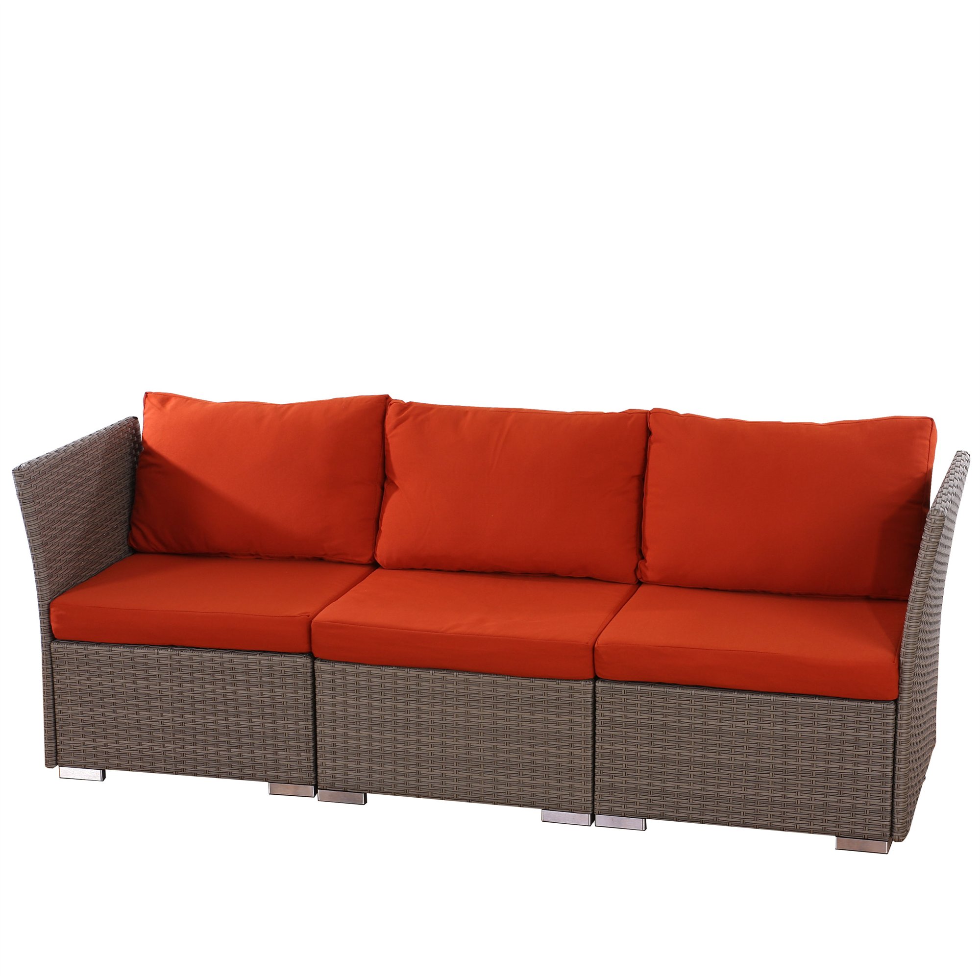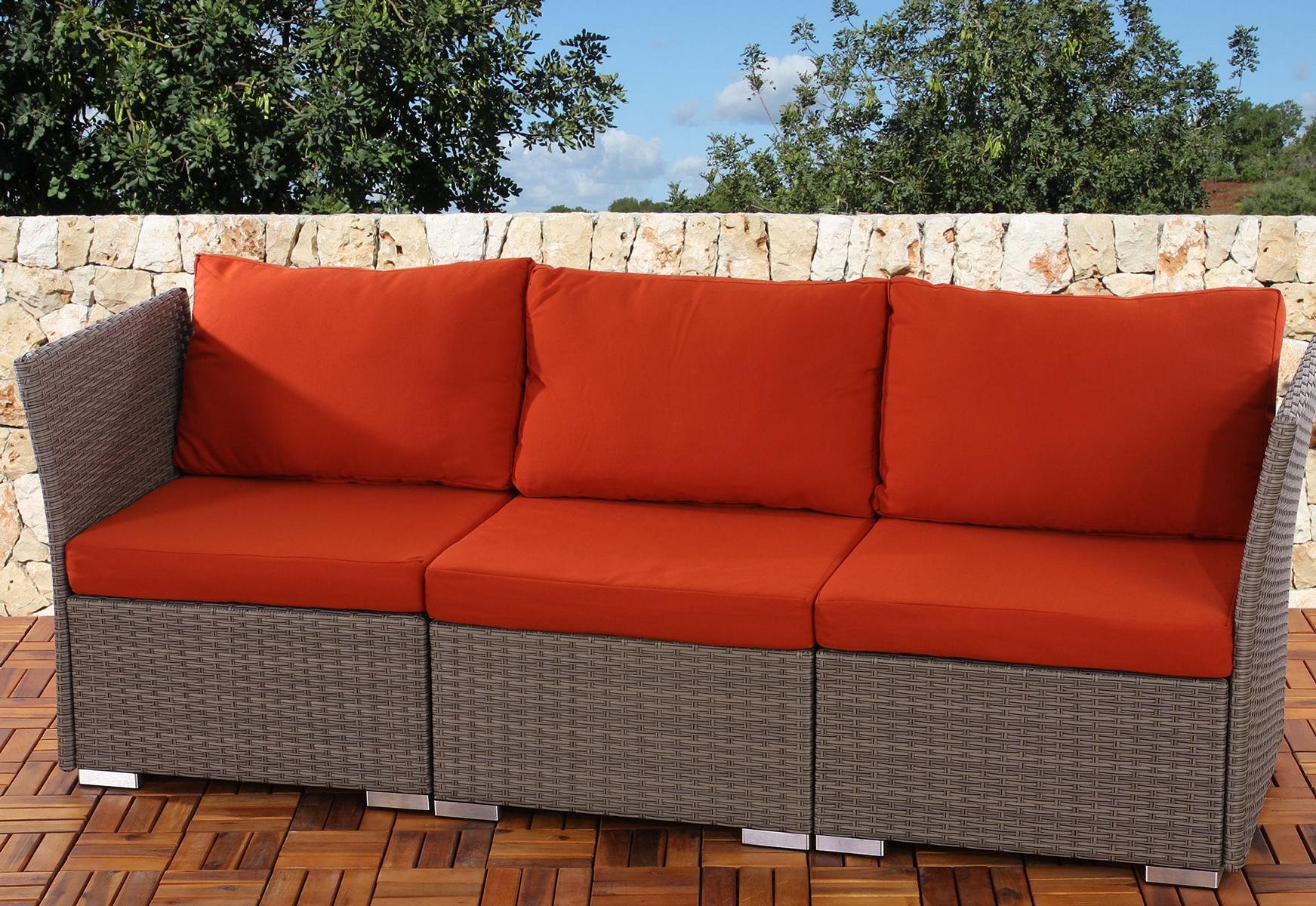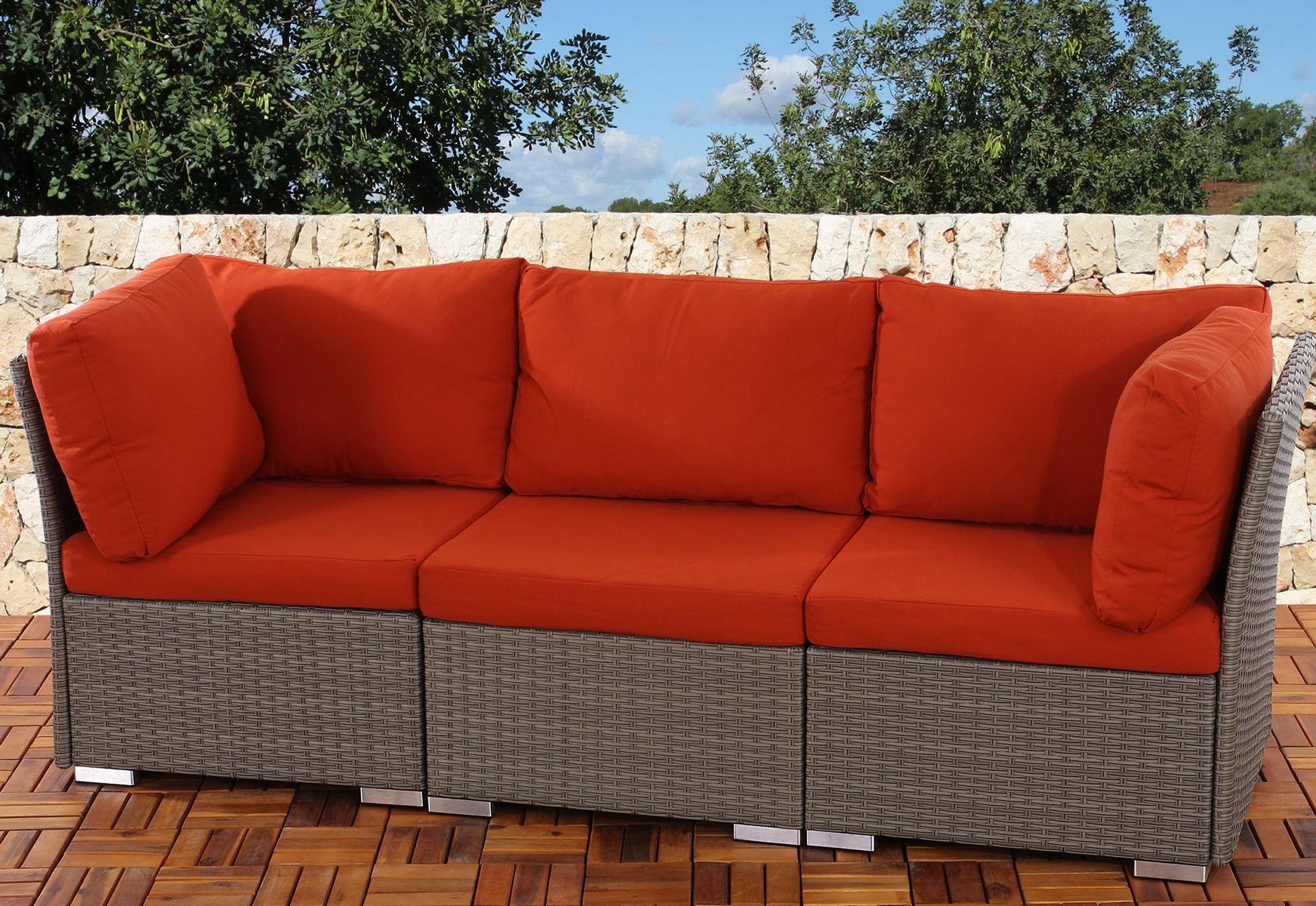Sofa 3 plazas Poly Rattan SIENA, Modular, Estructura Gris, con almohadas en bordeaux