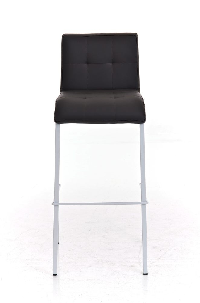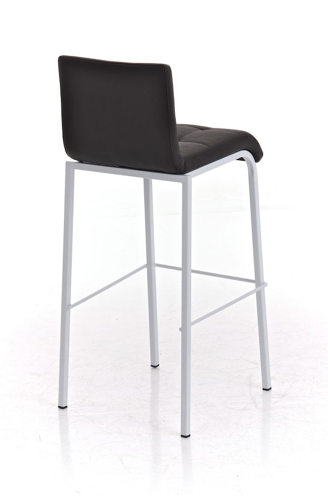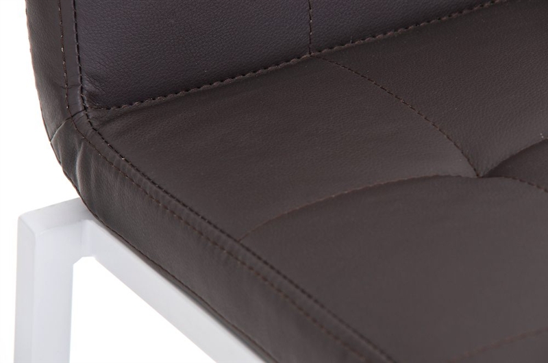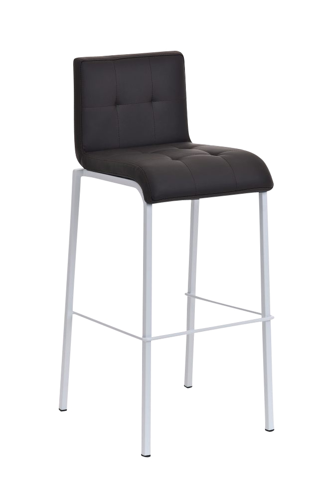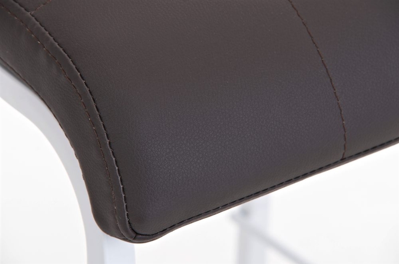 Taburete de Cocina o Bar MARTINA, estructura metálica en blanco, acolchado tapizado en piel marrón