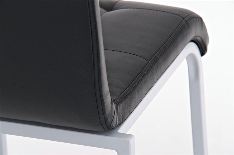Taburete para Bar o Cocina modelo MARTINA. Fabricado con estructura metálica en color blanco y comodo asiento acolchado tapizado en piel. Un modelo que destaca por ser apilable, no ocupando espacio y por sus lineas puras y siseño minimalista y elegante.