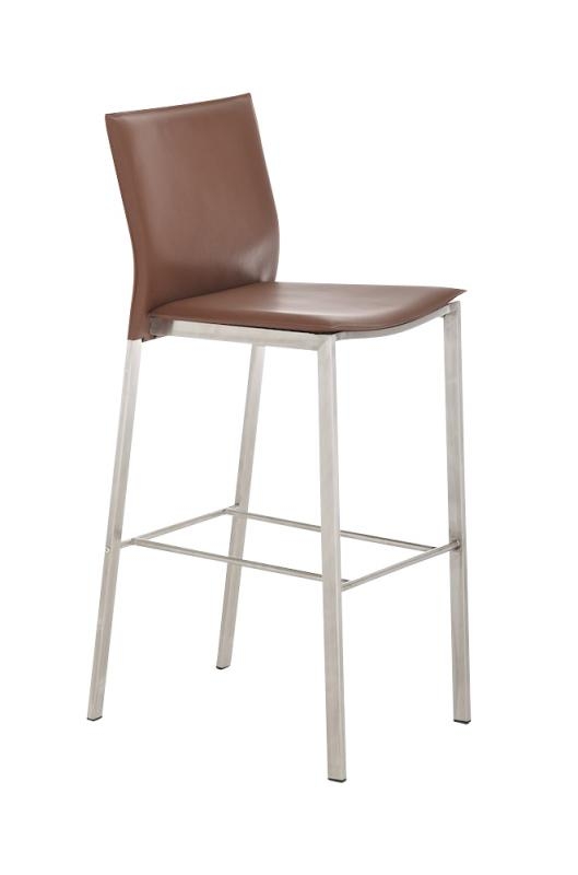 Taburete de Diseño TUM, estructura en acero, muy robusto, tapizado en piel color marrón