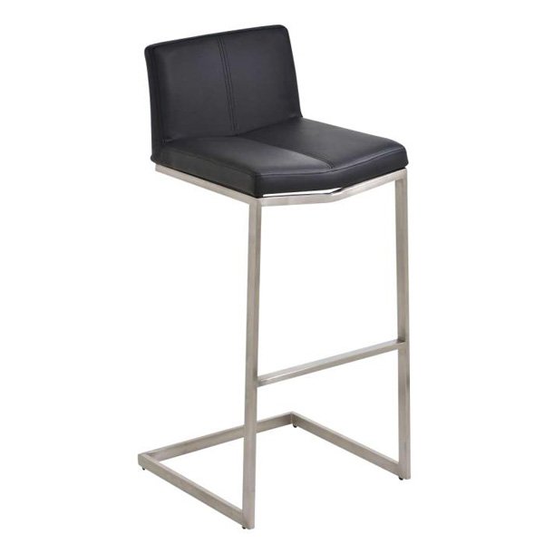 Taburete KOS, en acero inoxidable y acolchado en polipiel negro