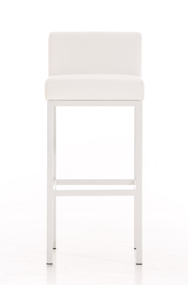 Taburete para Bar LUCIUS D, estructura metálica en blanco mate, altura asiento 76cm, en piel blanco